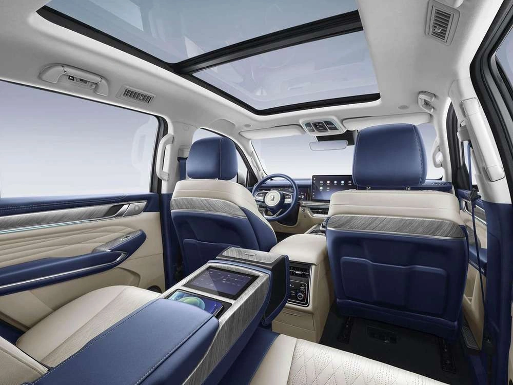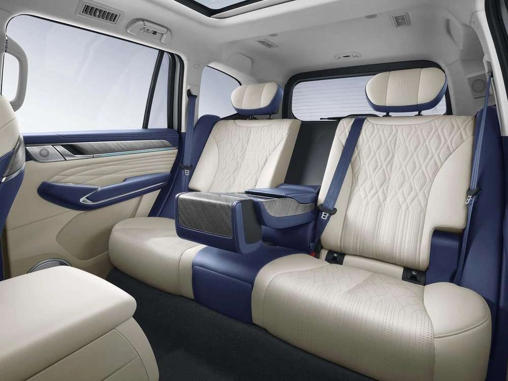 | Центральный подлокотник сидений заднего ряда с подстаканниками, отсеком для хранения и сенсорным экраном управления функциями автомобиля |